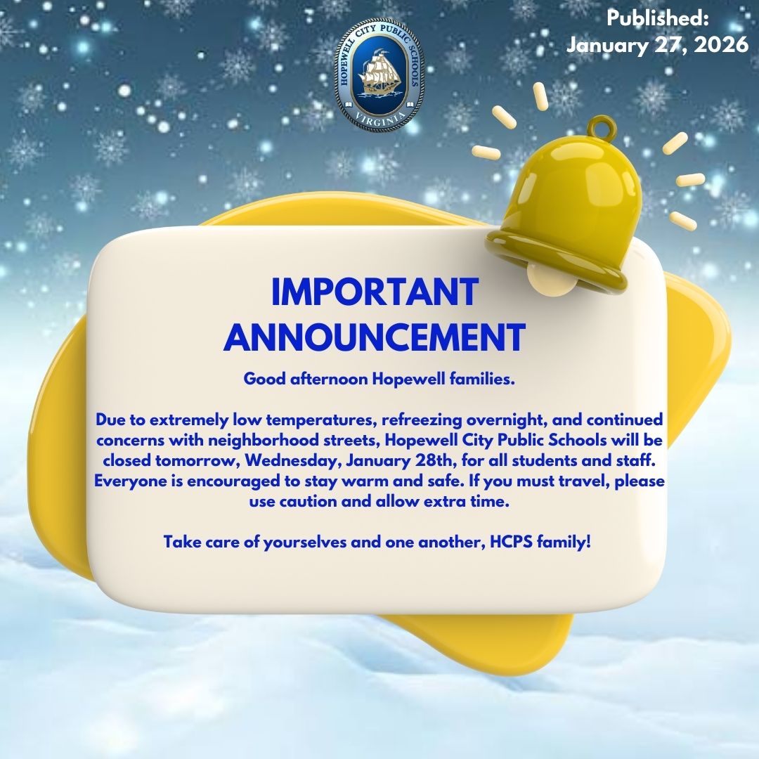 Hopewell City Public School will be Closed Wednesday, January 28, 2026