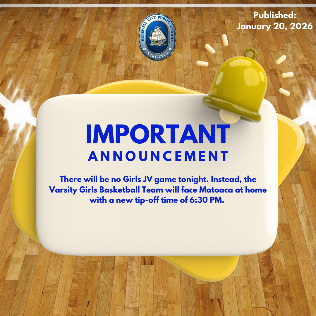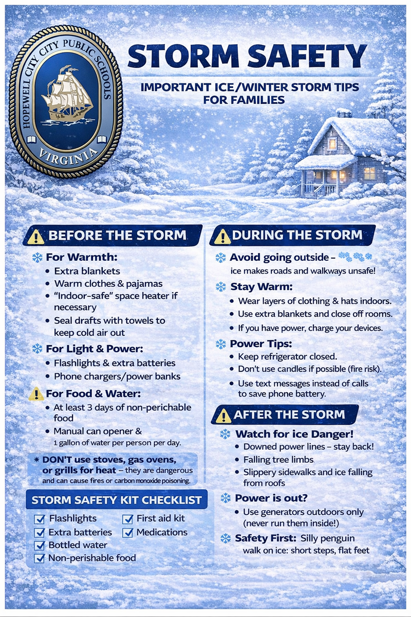 Hopewell City Public School will be Closed Tuesday , January 27, 2026